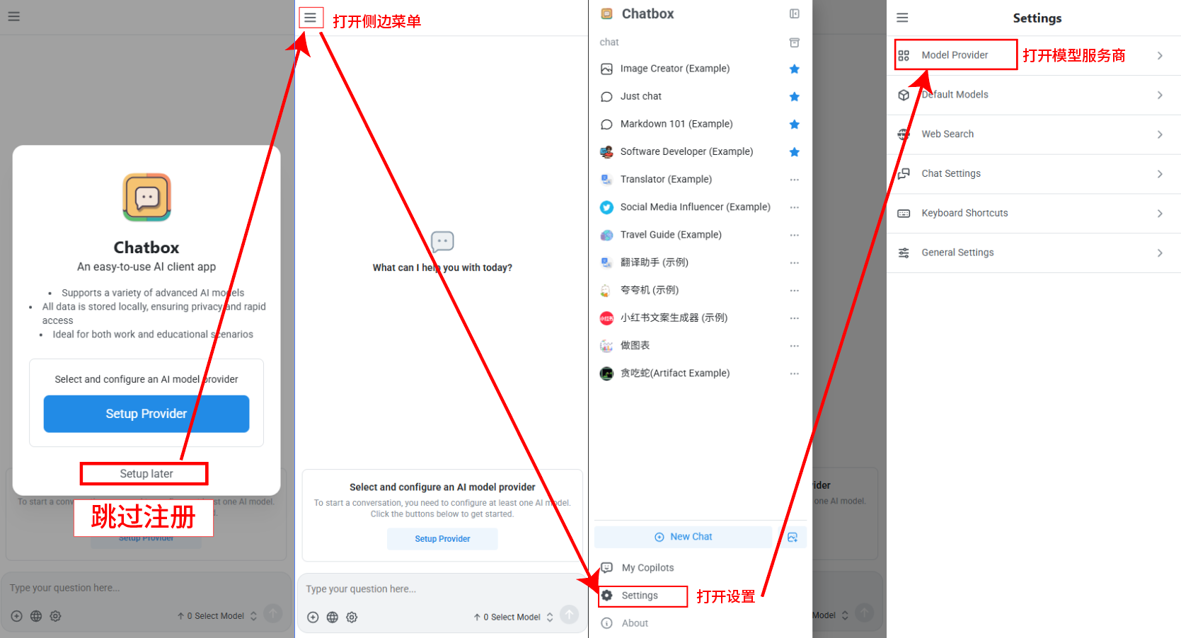 打开 Chatbox 客户端。可直接跳过登录。